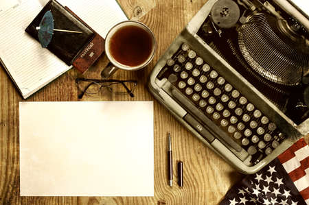 木製のテーブル レトロ タイプライター作家デスクトップ の写真素材 画像素材 Image